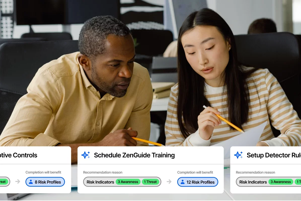 Identify at-risk employees and obtain AI-driven risk insights based on user behavior and threat activity. Provides employees real-time, risk-based guidance and targeted education tailored to their attack exposure, behavior and roles. Enables security teams to apply adaptive security controls and coach at-risk employees.