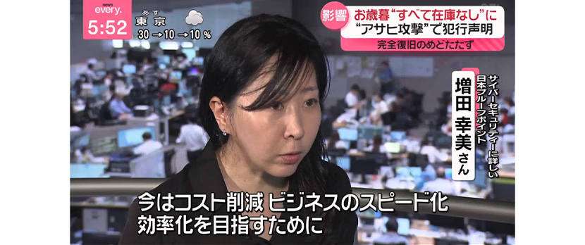 [TV出演] 日テレ news Every. (10月8日放送)にチーフエバンジェリスト増田幸美が出演 アサヒグループHDのランサム被害についてコメント